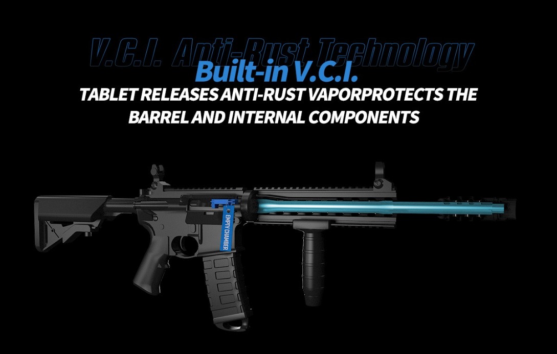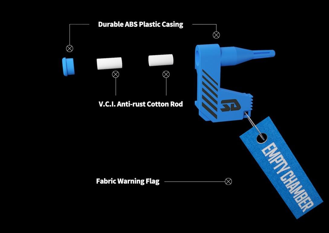 A safety flag and rust protector in one. This innovative design integrates V.C.I. technology into a chamber safety device, providing visible firearm safety while passively delivering anti-corrosion protection during storage and transport.