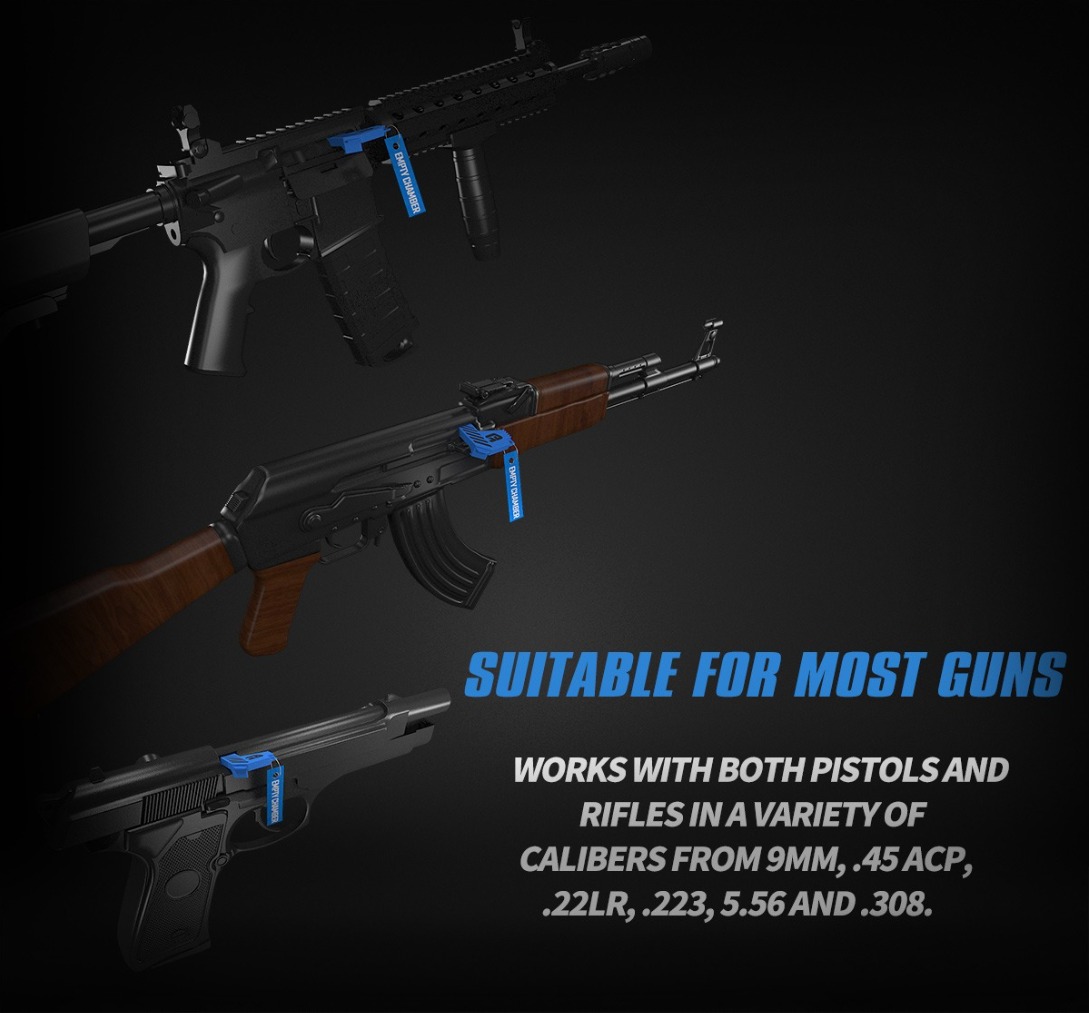Application: Works with both pistols and rifles in a variety of calibers from 9mm, .45 ACP, .223, 5.56, .308 and higher.